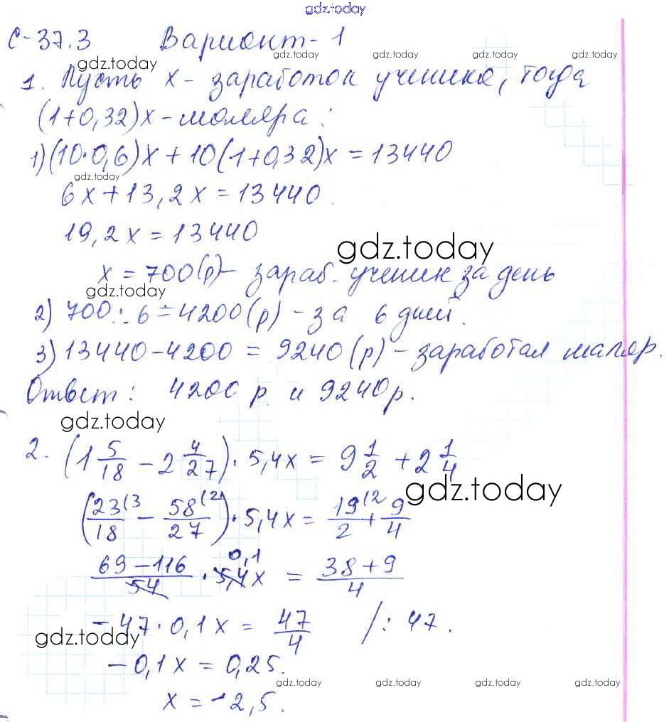 Ответы к 3. Варианты Решение к СР-37 1 Самостоятельным работам по Математике для 6 класса Зубарева, Лепешонкова Мнемозина УМК 2020