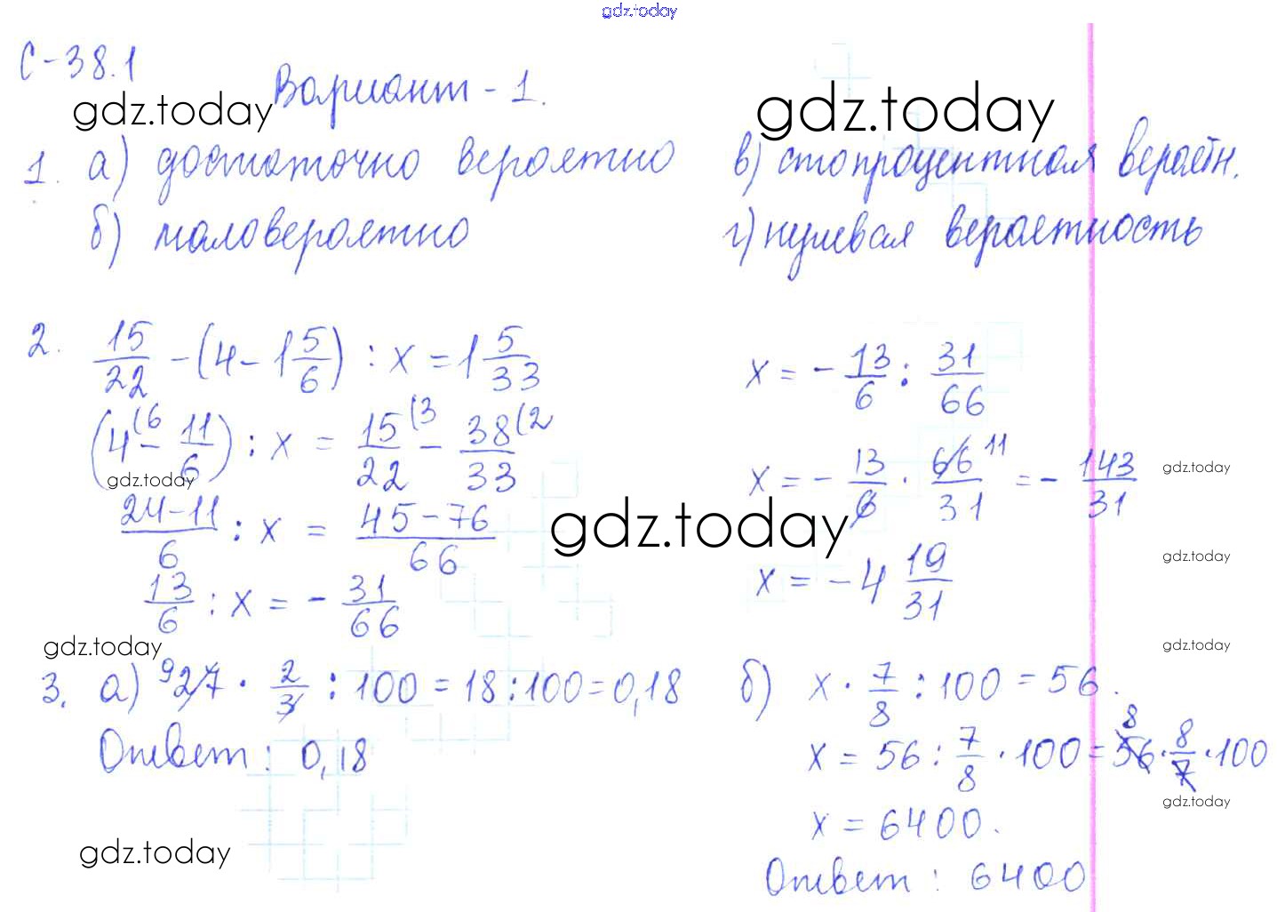 Ответы к 1. Варианты Решение к СР-38 1 Самостоятельным работам по Математике для 6 класса Зубарева, Лепешонкова Мнемозина УМК 2020