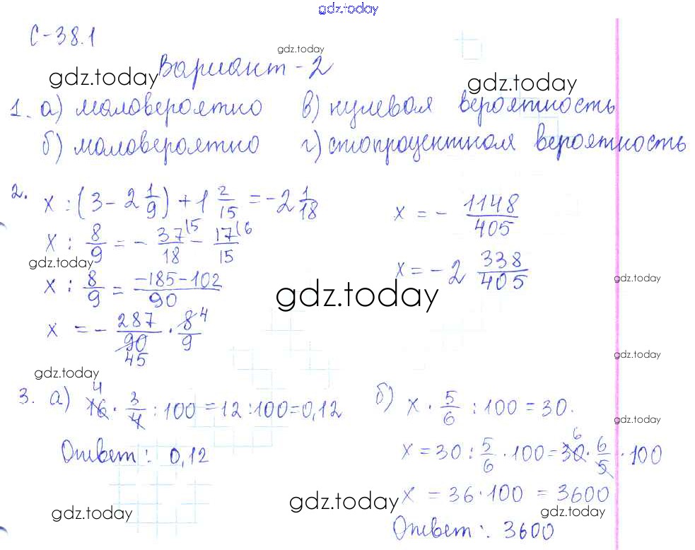 Ответы к 1. Варианты Решение к СР-38 2 Самостоятельным работам по Математике для 6 класса Зубарева, Лепешонкова Мнемозина УМК 2020