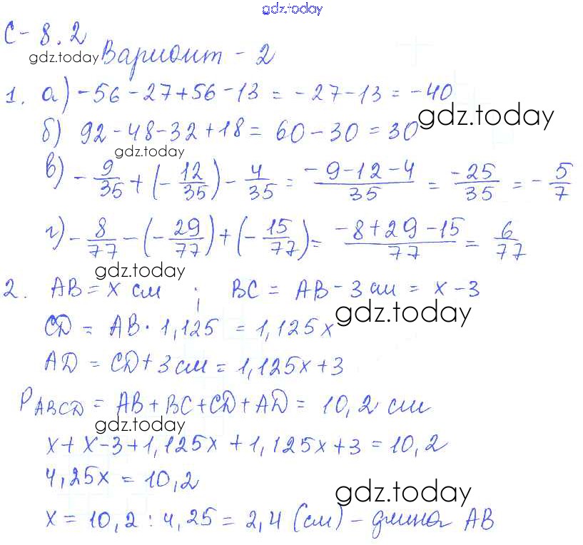 Ответы к 2. Варианты Решение к СР-8 2 Самостоятельным работам по Математике для 6 класса Зубарева, Лепешонкова Мнемозина УМК 2020