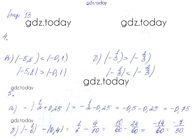 На страницах сайта gdz.today вы найдете учебный и вспомогательный материал, направленный на улучшения знаний школьной программы. ГДЗ - онлайн мир знаний Решение к части 1. Страницы 13 Тетради для контрольных работ по Математике для 6 класса Зубарева, Лепешонкова Мнемозина 2020