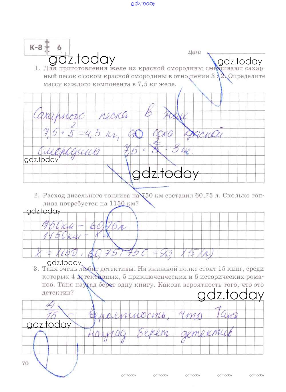 На страницах сайта gdz.today вы найдете учебный и вспомогательный материал, направленный на улучшения знаний школьной программы. ГДЗ - онлайн мир знаний Решение к части 1. Страницы 70 Тетради для контрольных работ по Математике для 6 класса Зубарева, Лепешонкова Мнемозина 2020