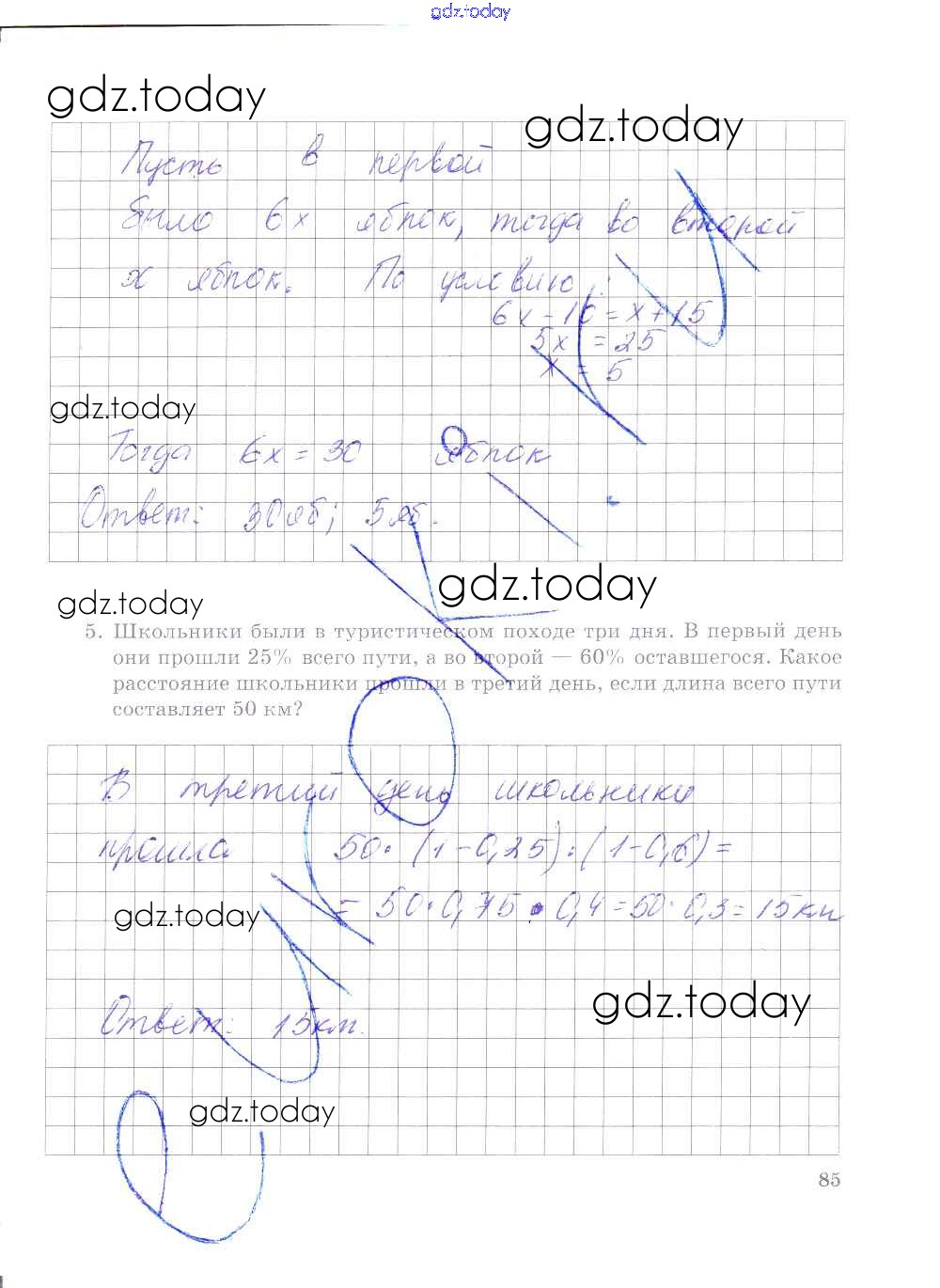 Ответы к Решение к части 1. Страницы 85 Тетради для контрольных работ по Математике для 6 класса Зубарева, Лепешонкова Мнемозина 2020