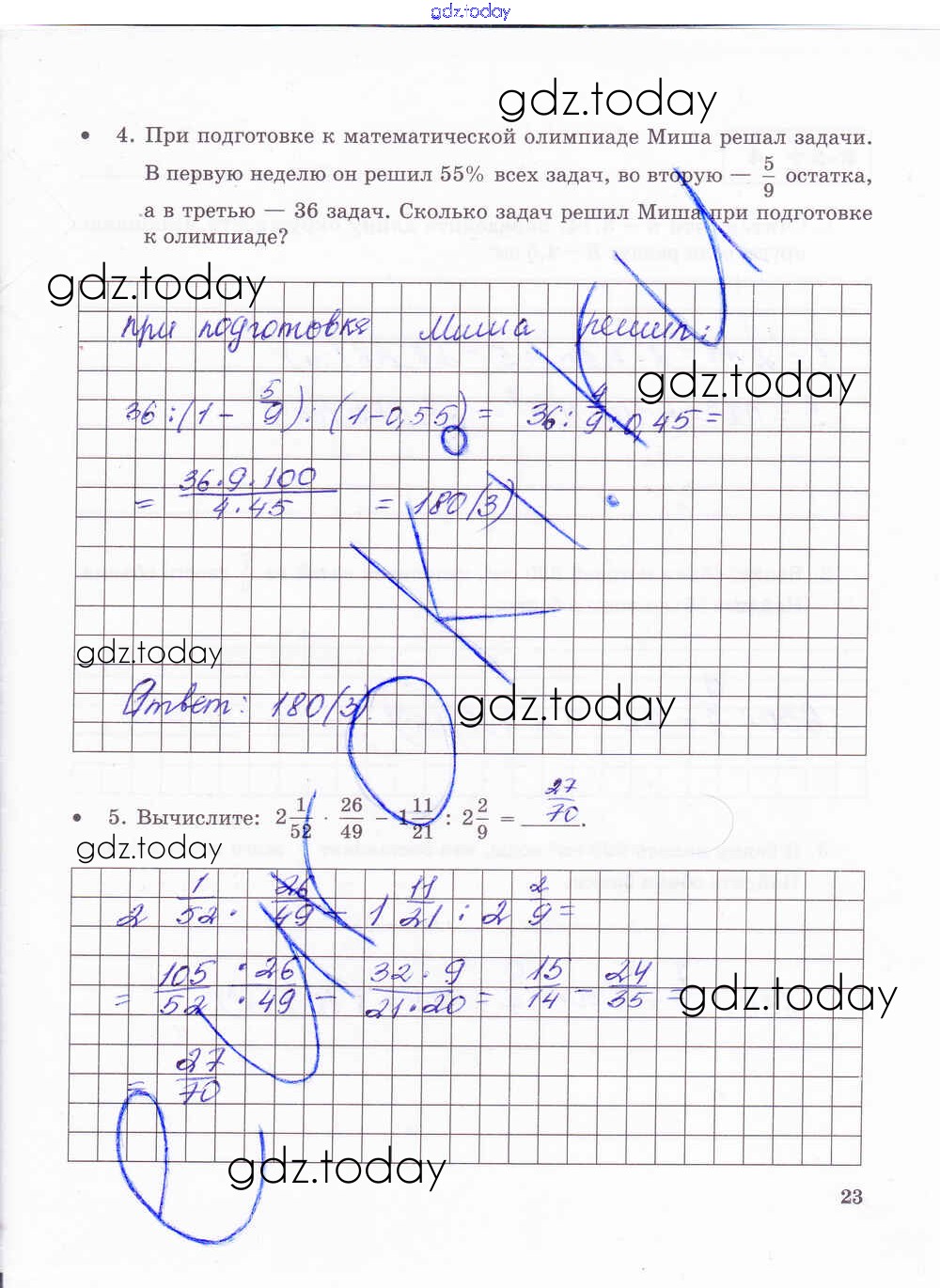 Ответы к Решение к части 2. Страницы 23 Тетради для контрольных работ по Математике для 6 класса Зубарева, Лепешонкова Мнемозина 2020
