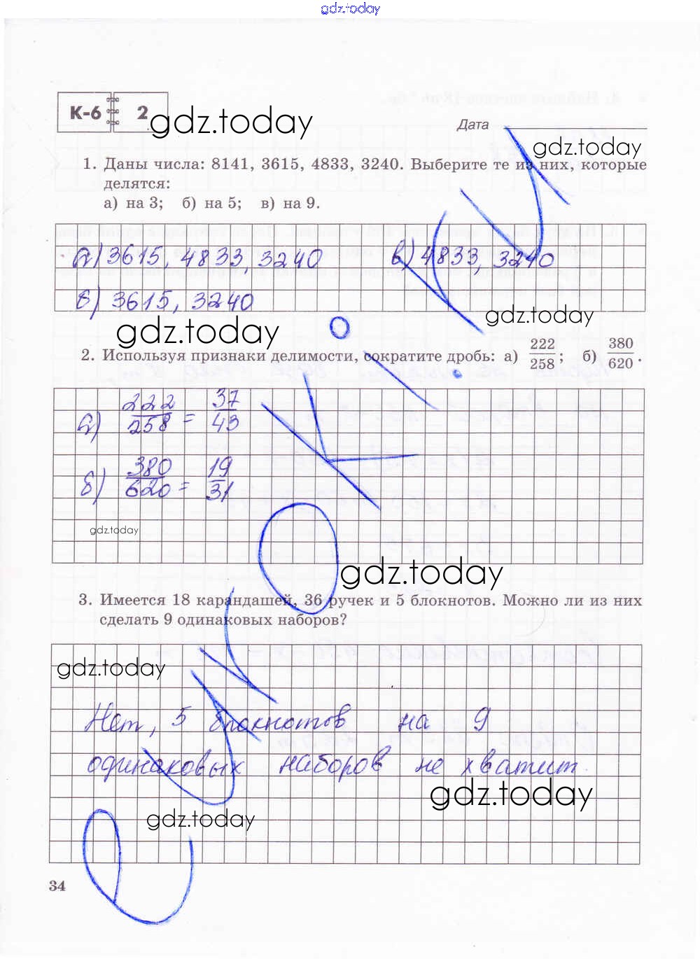На страницах сайта gdz.today вы найдете учебный и вспомогательный материал, направленный на улучшения знаний школьной программы. ГДЗ - онлайн мир знаний Решение к части 2. Страницы 34 Тетради для контрольных работ по Математике для 6 класса Зубарева, Лепешонкова Мнемозина 2020