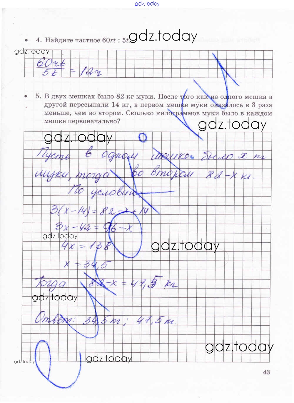 Ответы к Решение к части 2. Страницы 43 Тетради для контрольных работ по Математике для 6 класса Зубарева, Лепешонкова Мнемозина 2020