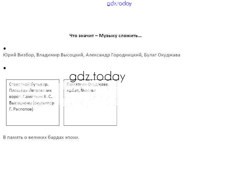 На страницах сайта gdz.today вы найдете учебный и вспомогательный материал, направленный на улучшения знаний школьной программы. ГДЗ - онлайн мир знаний Страницы (решение) 30 Творческой тетради по Музыке для 6 класса Сергеева, Критская Просвещение 2017