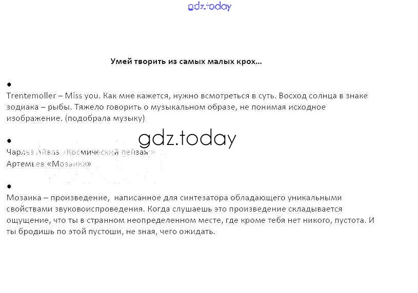 На страницах сайта gdz.today вы найдете учебный и вспомогательный материал, направленный на улучшения знаний школьной программы. ГДЗ - онлайн мир знаний Страницы (решение) 42 Творческой тетради по Музыке для 6 класса Сергеева, Критская Просвещение 2017