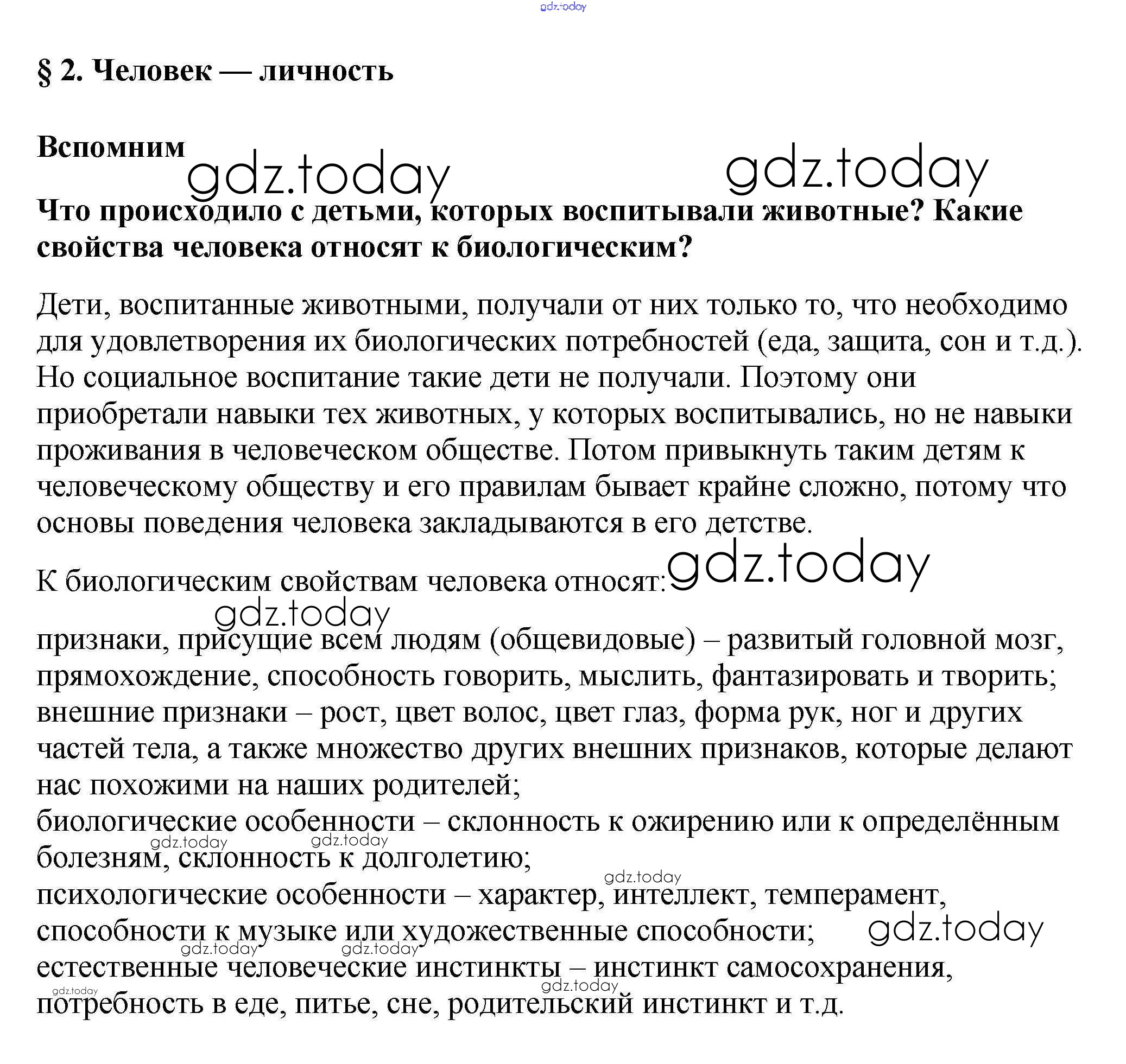 На страницах сайта gdz.today вы найдете учебный и вспомогательный материал, направленный на улучшения знаний школьной программы. ГДЗ - онлайн мир знаний Вспомним §2. Человек — личность 1 Учебнику по Обществознанию для 6 класса Боголюбов, Виноградова Просвещение, Просвещение Академический школьный учебник 2016, 2020