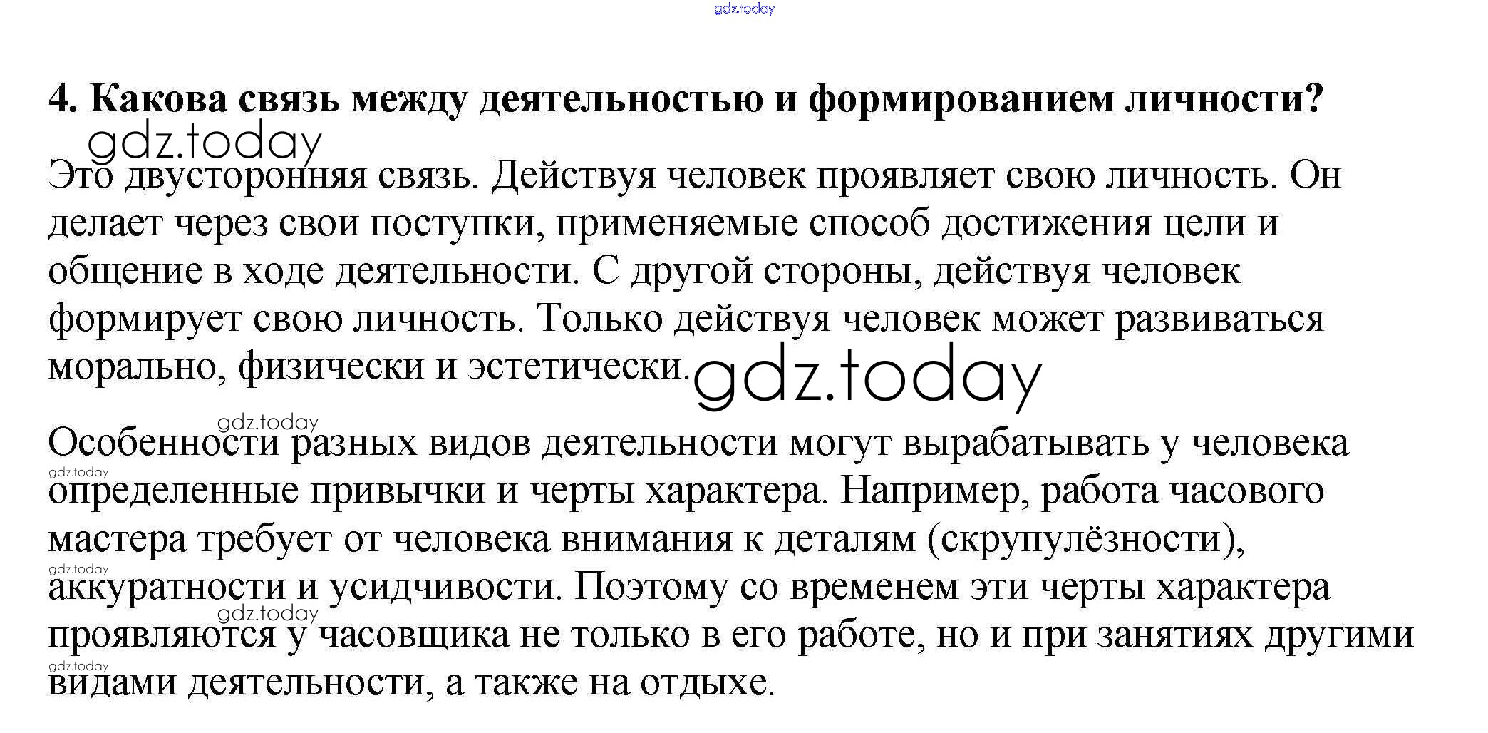 На страницах сайта gdz.today вы найдете учебный и вспомогательный материал, направленный на улучшения знаний школьной программы. ГДЗ - онлайн мир знаний Проверим себя §7. Деятельность человека 4 Учебнику по Обществознанию для 6 класса Боголюбов, Виноградова Просвещение, Просвещение Академический школьный учебник 2016, 2020