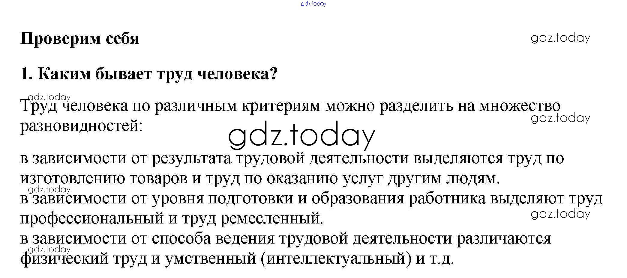 На страницах сайта gdz.today вы найдете учебный и вспомогательный материал, направленный на улучшения знаний школьной программы. ГДЗ - онлайн мир знаний Проверим себя §8. Труд — основа жизни 1 Учебнику по Обществознанию для 6 класса Боголюбов, Виноградова Просвещение, Просвещение Академический школьный учебник 2016, 2020