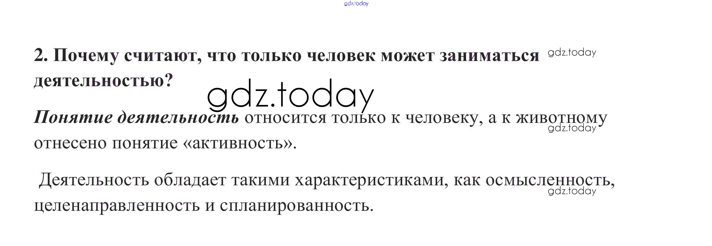 На страницах сайта gdz.today вы найдете учебный и вспомогательный материал, направленный на улучшения знаний школьной программы. ГДЗ - онлайн мир знаний Проверим себя §3. Человек и его деятельность 2 Учебнику по Обществознанию для 6 класса Боголюбов, Виноградова Просвещение, Просвещение Академический школьный учебник 2016, 2020