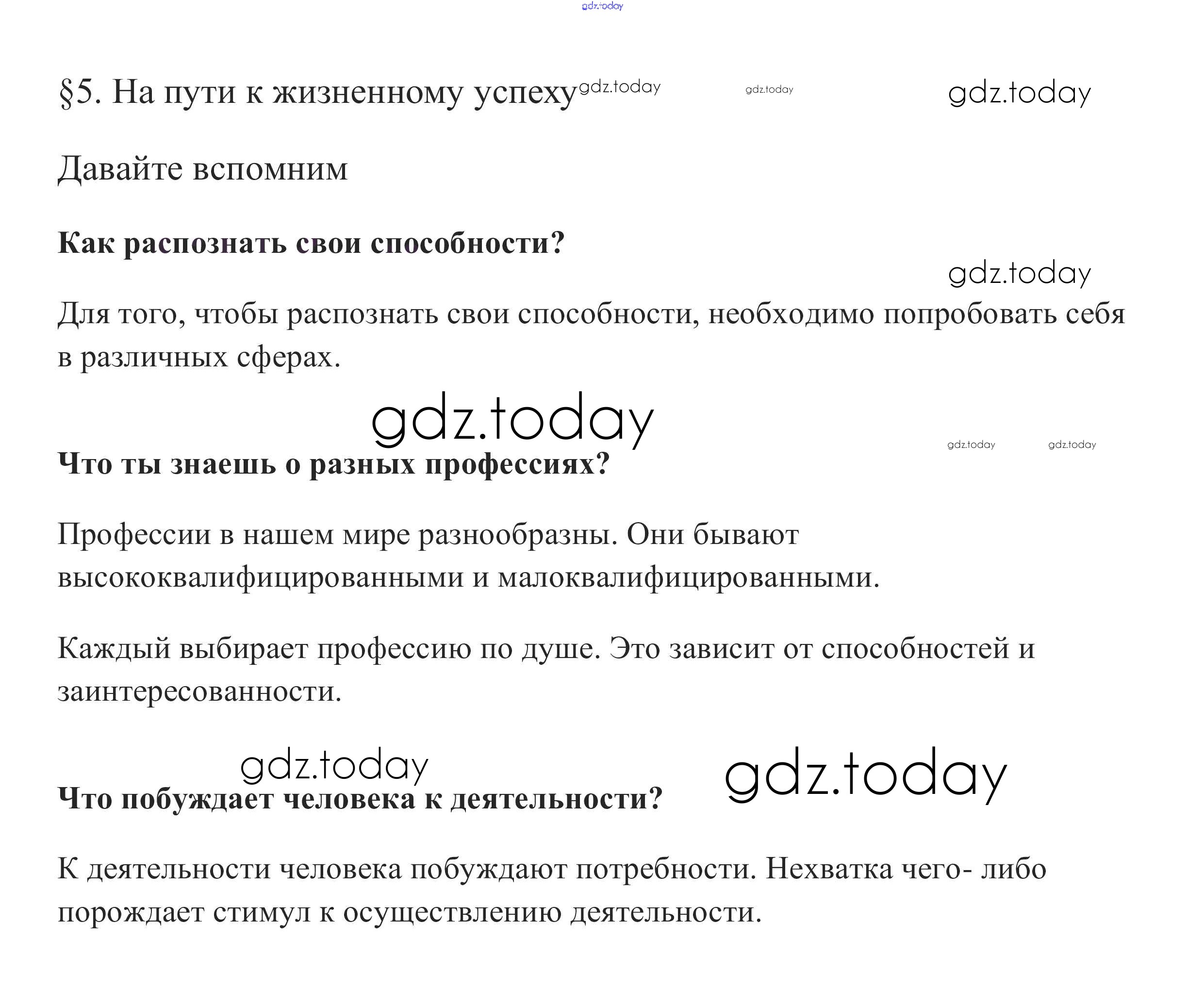 На страницах сайта gdz.today вы найдете учебный и вспомогательный материал, направленный на улучшения знаний школьной программы. ГДЗ - онлайн мир знаний Вспомним §5. На пути к жизненному успеху 1 Учебнику по Обществознанию для 6 класса Боголюбов, Виноградова Просвещение, Просвещение Академический школьный учебник 2016, 2020