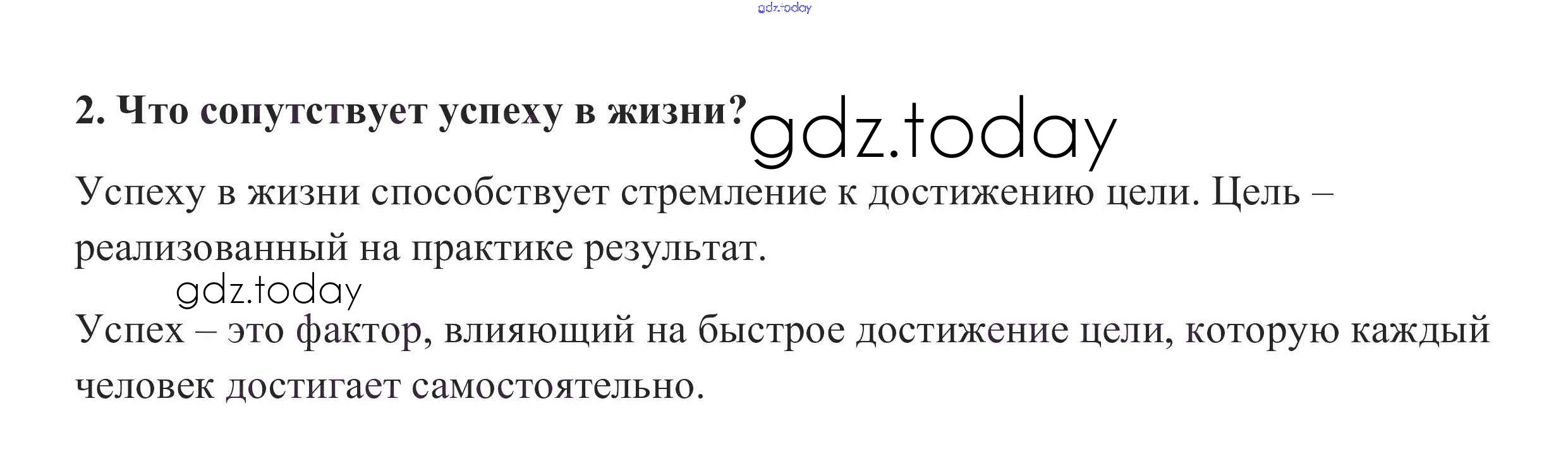 На страницах сайта gdz.today вы найдете учебный и вспомогательный материал, направленный на улучшения знаний школьной программы. ГДЗ - онлайн мир знаний Проверим себя §5. На пути к жизненному успеху 2 Учебнику по Обществознанию для 6 класса Боголюбов, Виноградова Просвещение, Просвещение Академический школьный учебник 2016, 2020
