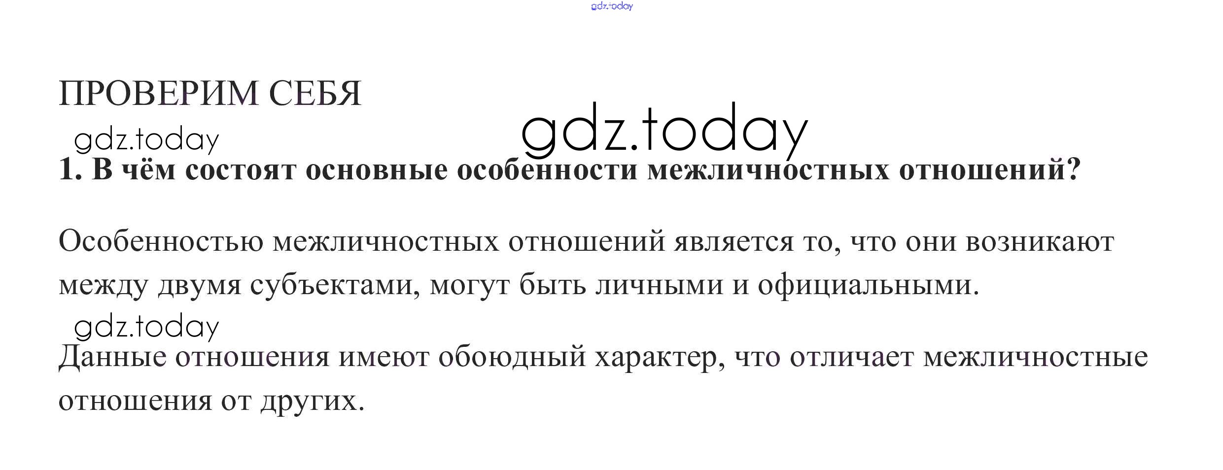 На страницах сайта gdz.today вы найдете учебный и вспомогательный материал, направленный на улучшения знаний школьной программы. ГДЗ - онлайн мир знаний Проверим себя §6. Межличностные отношения 1 Учебнику по Обществознанию для 6 класса Боголюбов, Виноградова Просвещение, Просвещение Академический школьный учебник 2016, 2020