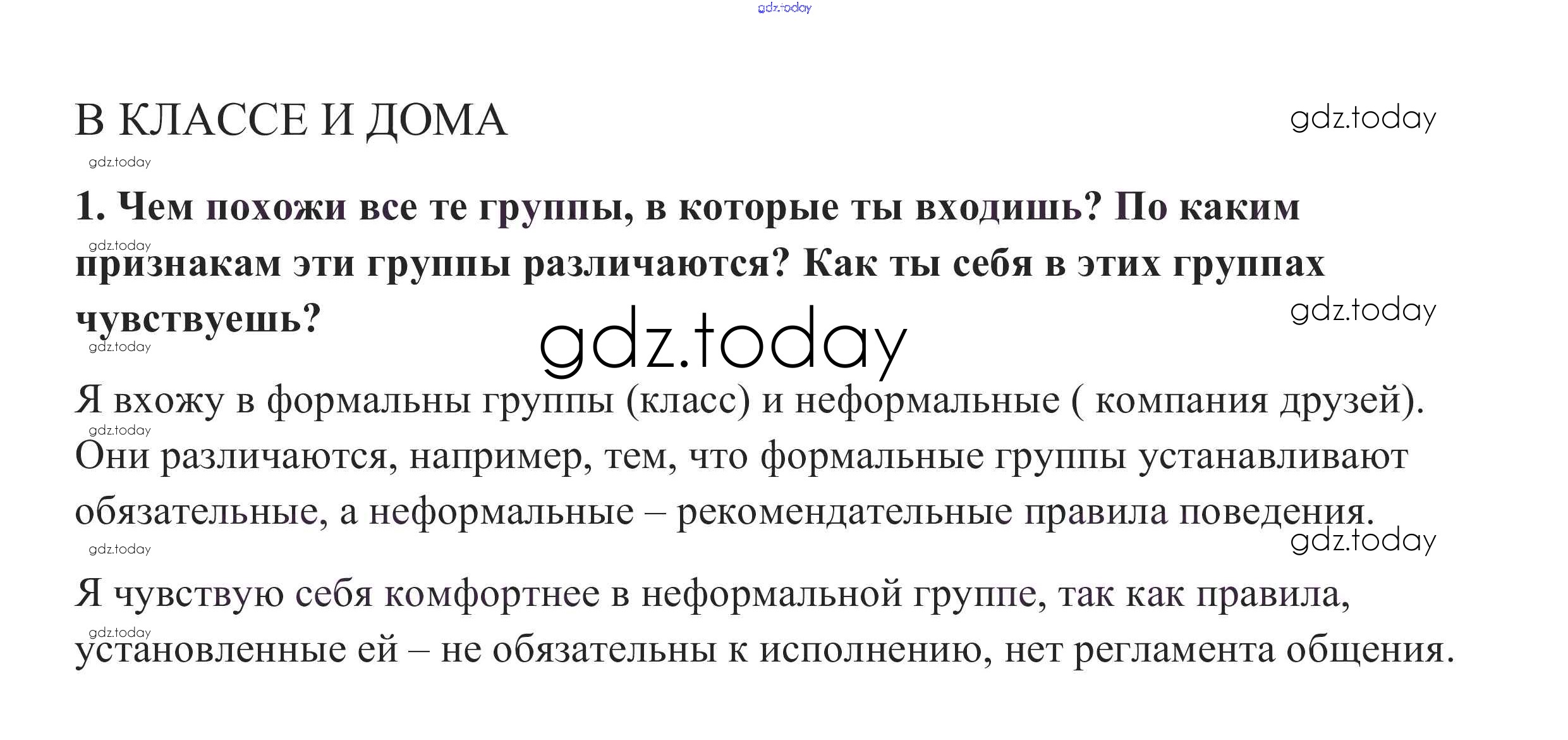 На страницах сайта gdz.today вы найдете учебный и вспомогательный материал, направленный на улучшения знаний школьной программы. ГДЗ - онлайн мир знаний В классе и дома §7. Человек в группе 1 Учебнику по Обществознанию для 6 класса Боголюбов, Виноградова Просвещение, Просвещение Академический школьный учебник 2016, 2020