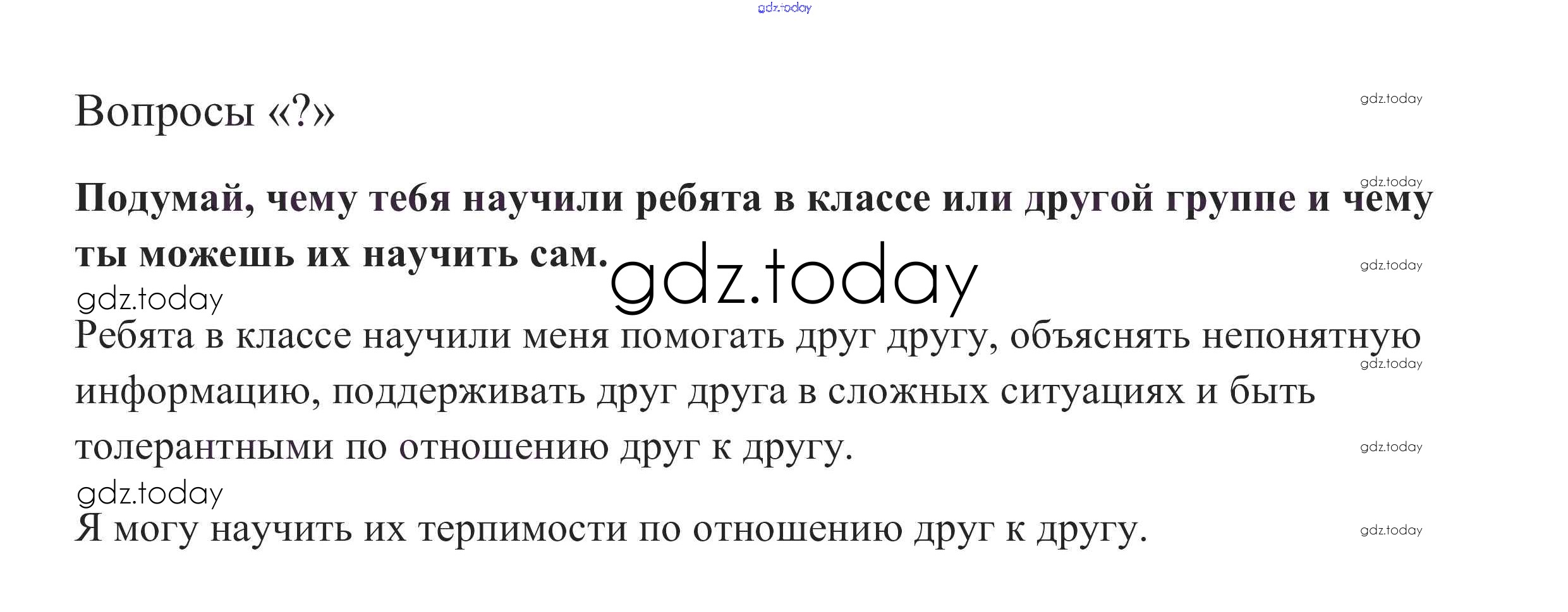 На страницах сайта gdz.today вы найдете учебный и вспомогательный материал, направленный на улучшения знаний школьной программы. ГДЗ - онлайн мир знаний Вопросы §7. Человек в группе 3 Учебнику по Обществознанию для 6 класса Боголюбов, Виноградова Просвещение, Просвещение Академический школьный учебник 2016, 2020