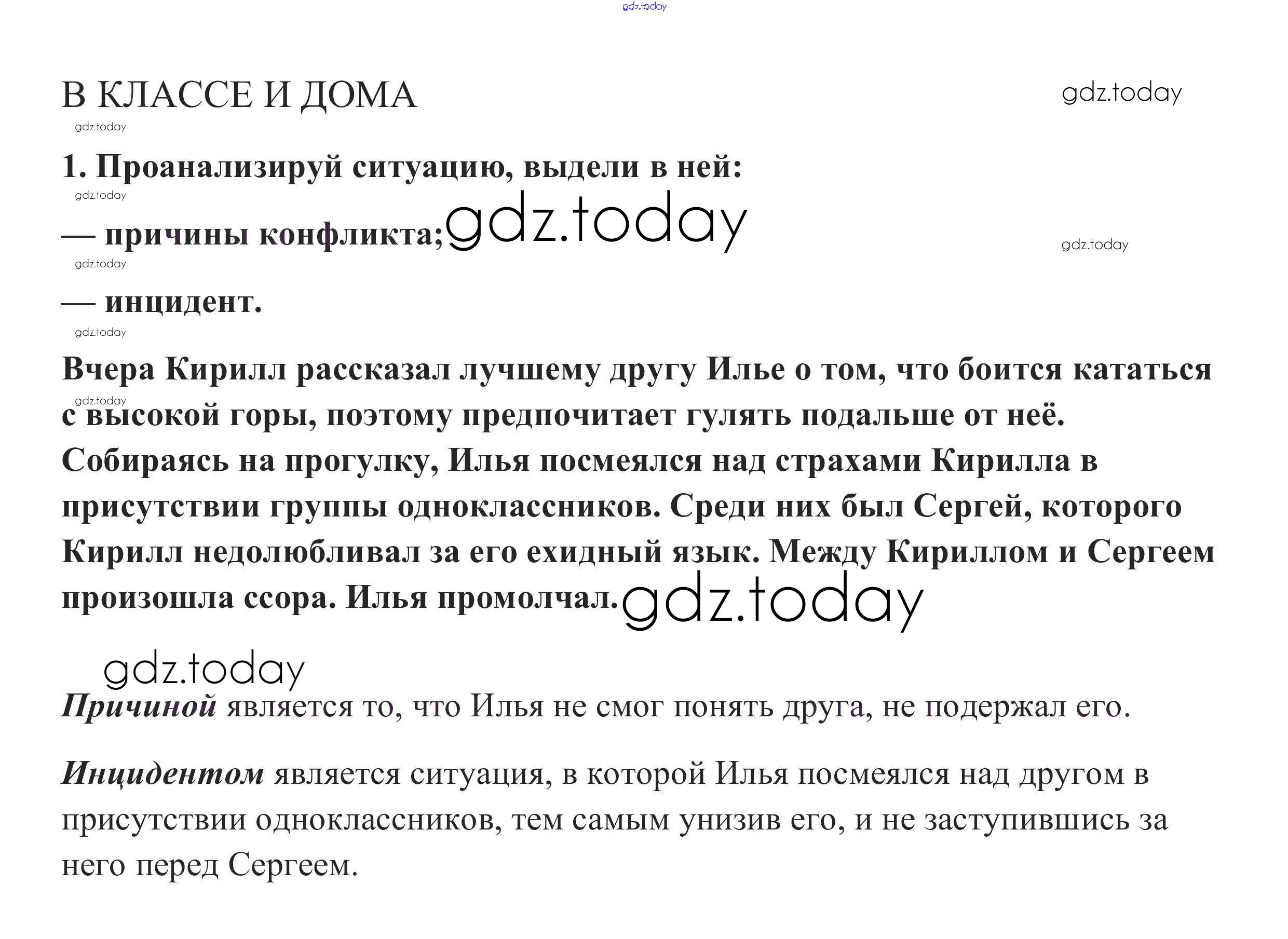 На страницах сайта gdz.today вы найдете учебный и вспомогательный материал, направленный на улучшения знаний школьной программы. ГДЗ - онлайн мир знаний В классе и дома §9. Конфликты в межличностных отношениях 1 Учебнику по Обществознанию для 6 класса Боголюбов, Виноградова Просвещение, Просвещение Академический школьный учебник 2016, 2020