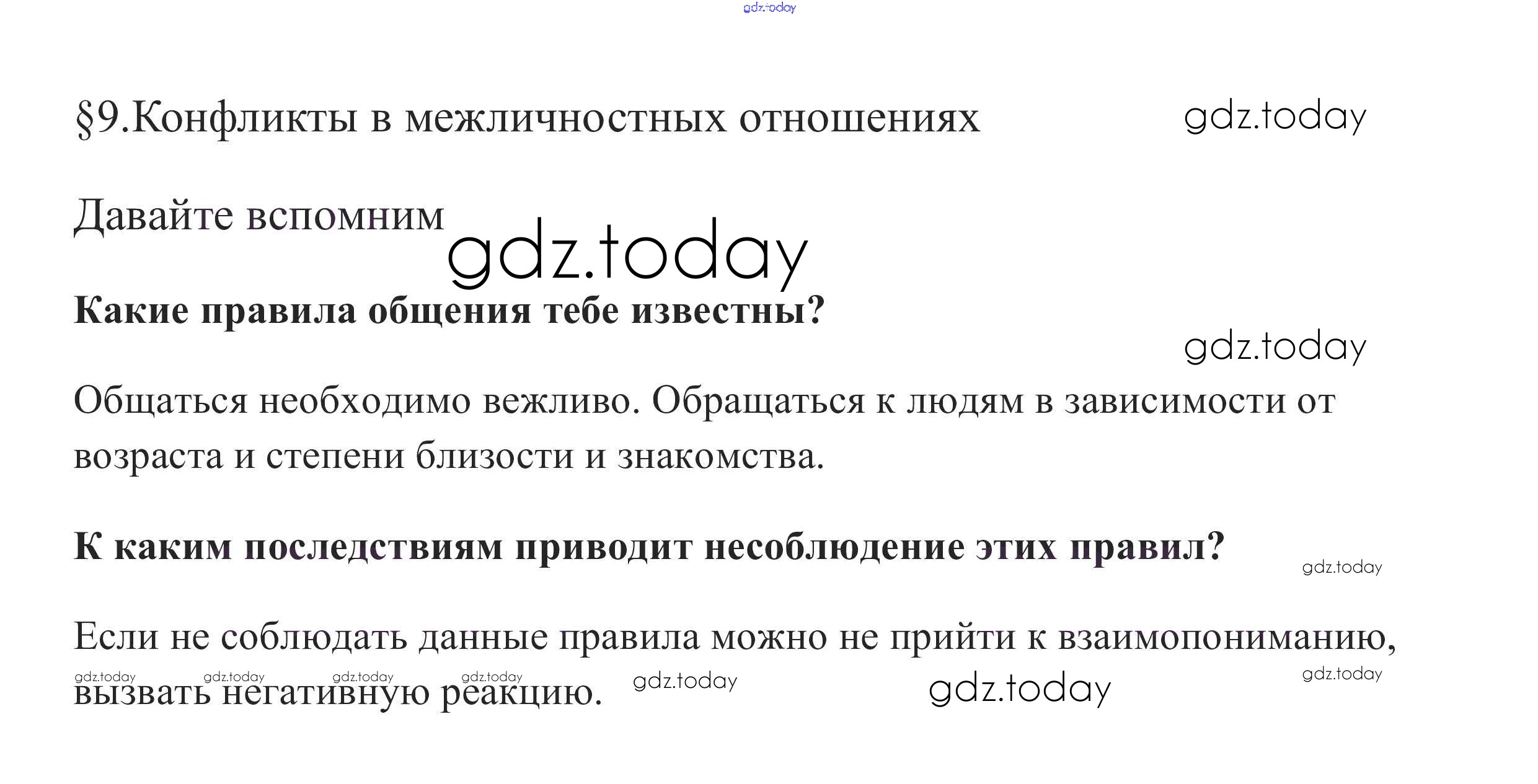 На страницах сайта gdz.today вы найдете учебный и вспомогательный материал, направленный на улучшения знаний школьной программы. ГДЗ - онлайн мир знаний Вспомним §9. Конфликты в межличностных отношениях 1 Учебнику по Обществознанию для 6 класса Боголюбов, Виноградова Просвещение, Просвещение Академический школьный учебник 2016, 2020