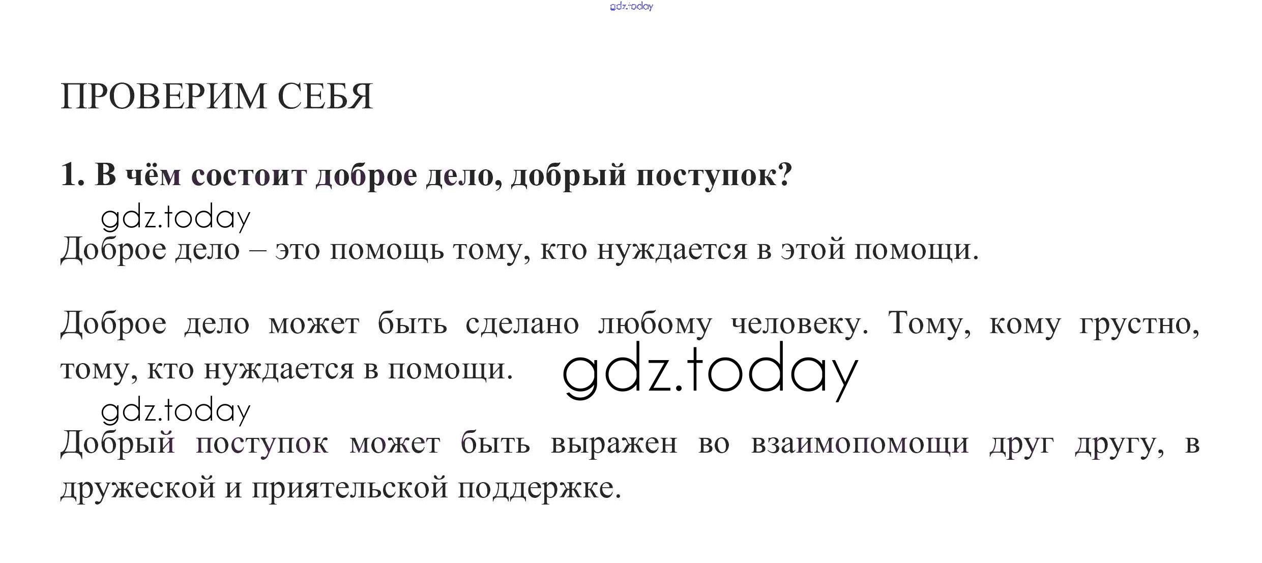 На страницах сайта gdz.today вы найдете учебный и вспомогательный материал, направленный на улучшения знаний школьной программы. ГДЗ - онлайн мир знаний Проверим себя §10. Человек славен добрыми делами 1 Учебнику по Обществознанию для 6 класса Боголюбов, Виноградова Просвещение, Просвещение Академический школьный учебник 2016, 2020
