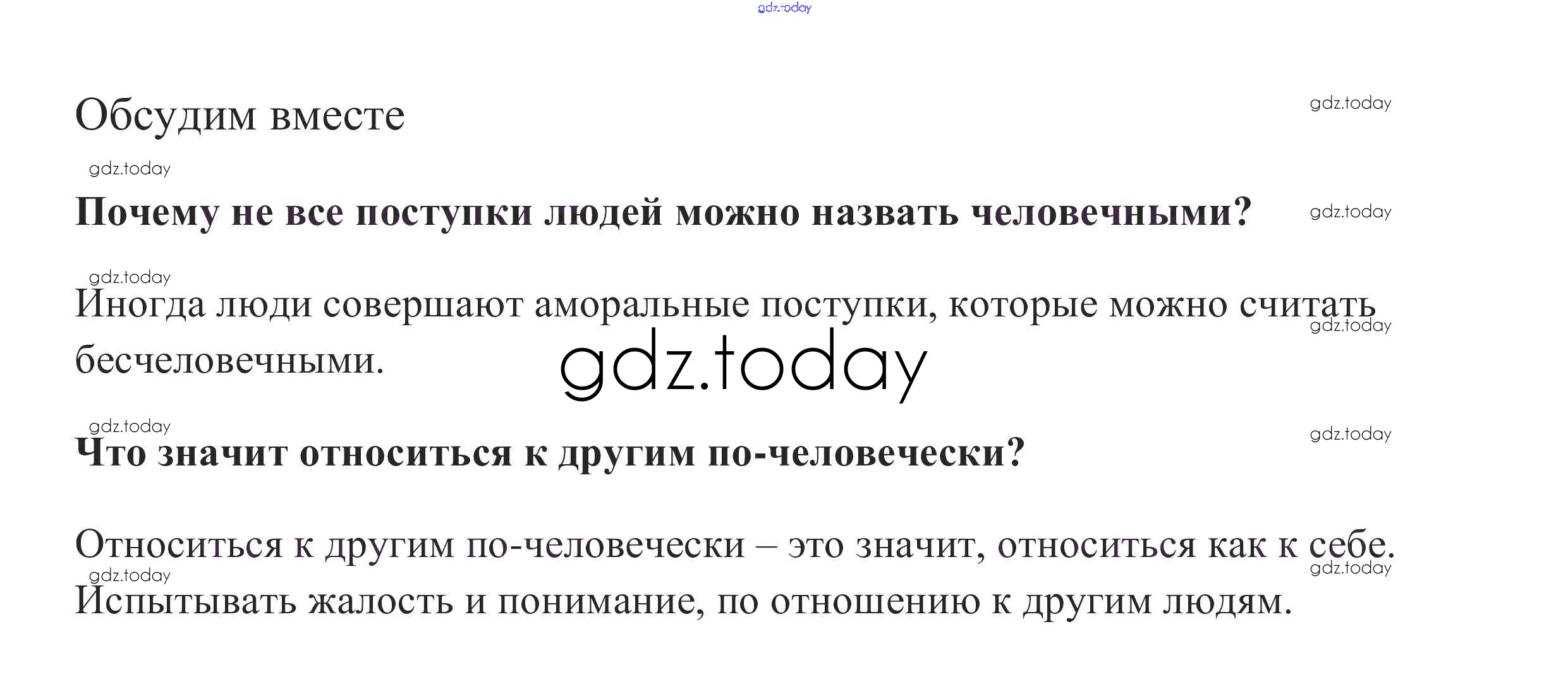 На страницах сайта gdz.today вы найдете учебный и вспомогательный материал, направленный на улучшения знаний школьной программы. ГДЗ - онлайн мир знаний Обсудим вместе §12. Человек и человечность 1 Учебнику по Обществознанию для 6 класса Боголюбов, Виноградова Просвещение, Просвещение Академический школьный учебник 2016, 2020