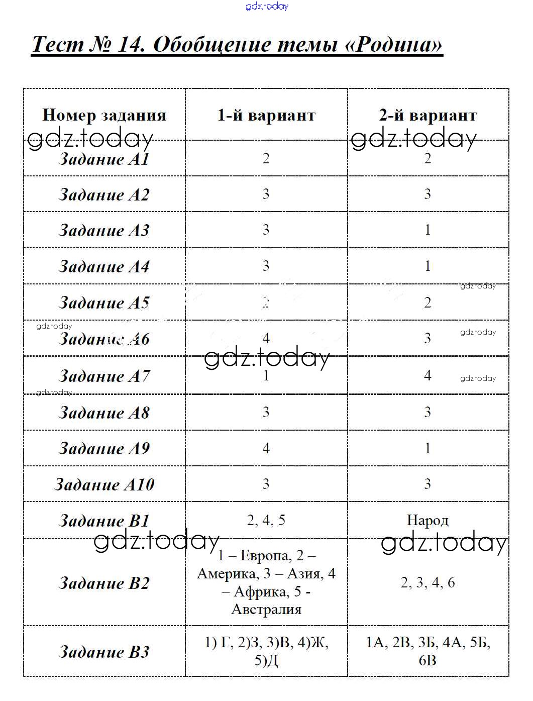 На страницах сайта gdz.today вы найдете учебный и вспомогательный материал, направленный на улучшения знаний школьной программы. ГДЗ - онлайн мир знаний Решение к тестам Тест №14. Обобщение темы - Родина Контрольно-измерительным материалам (КИМ) по Обществознанию для 6 класса Поздеева ВАКО 2017