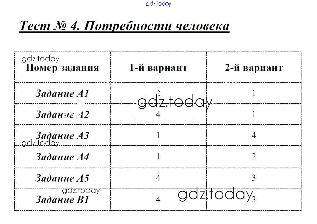 Ответы к Решение к тестам Тест №4. Потребности человека Контрольно-измерительным материалам (КИМ) по Обществознанию для 6 класса Поздеева ВАКО 2017