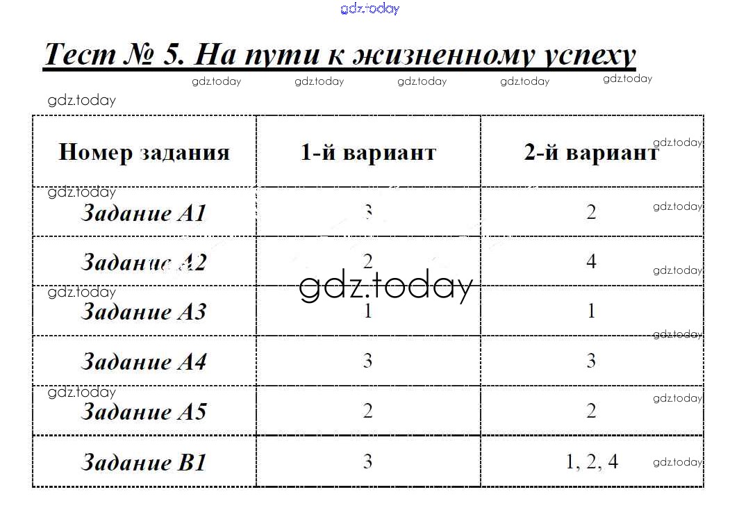 На страницах сайта gdz.today вы найдете учебный и вспомогательный материал, направленный на улучшения знаний школьной программы. ГДЗ - онлайн мир знаний Решение к тестам Тест №5. На пути к жизненному успеху Контрольно-измерительным материалам (КИМ) по Обществознанию для 6 класса Поздеева ВАКО 2017
