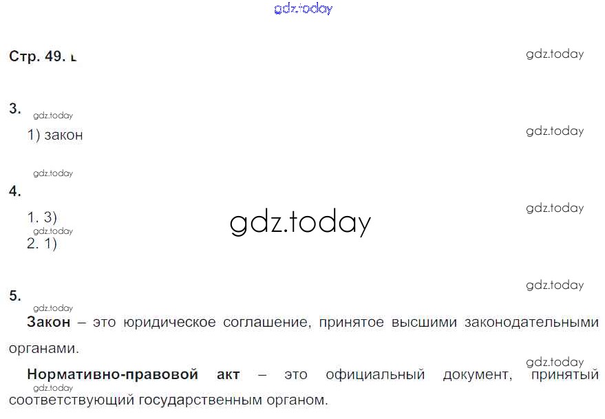 На страницах сайта gdz.today вы найдете учебный и вспомогательный материал, направленный на улучшения знаний школьной программы. ГДЗ - онлайн мир знаний Решение к главе 2. Гражданин и закон стр. 49 Рабочей тетради по Обществознанию для 6 класса Федорова Дрофа Вертикаль 2017