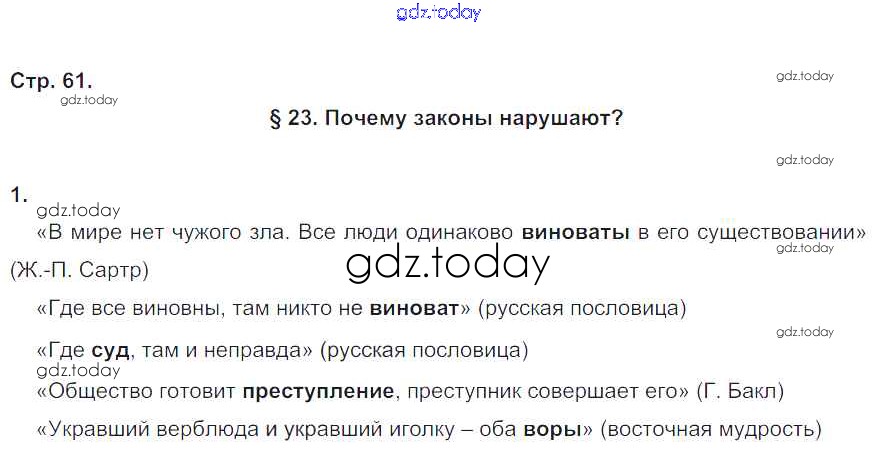 На страницах сайта gdz.today вы найдете учебный и вспомогательный материал, направленный на улучшения знаний школьной программы. ГДЗ - онлайн мир знаний Решение к главе 2. Гражданин и закон стр. 61 Рабочей тетради по Обществознанию для 6 класса Федорова Дрофа Вертикаль 2017