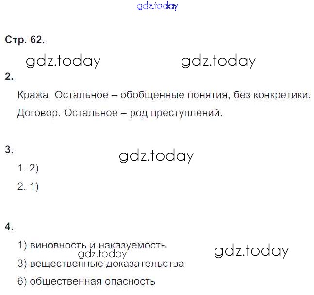 На страницах сайта gdz.today вы найдете учебный и вспомогательный материал, направленный на улучшения знаний школьной программы. ГДЗ - онлайн мир знаний Решение к главе 2. Гражданин и закон стр. 62 Рабочей тетради по Обществознанию для 6 класса Федорова Дрофа Вертикаль 2017