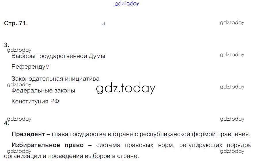 На страницах сайта gdz.today вы найдете учебный и вспомогательный материал, направленный на улучшения знаний школьной программы. ГДЗ - онлайн мир знаний Решение к главе 3. Государство и власть стр. 71 Рабочей тетради по Обществознанию для 6 класса Федорова Дрофа Вертикаль 2017