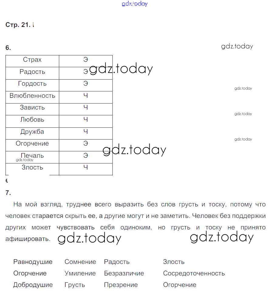 Ответы к Решение к главе 1. Параграфы 1-5 стр. 21 Рабочей тетради по Обществознанию для 6 класса Иванова, Хотеенкова Просвещение 2012