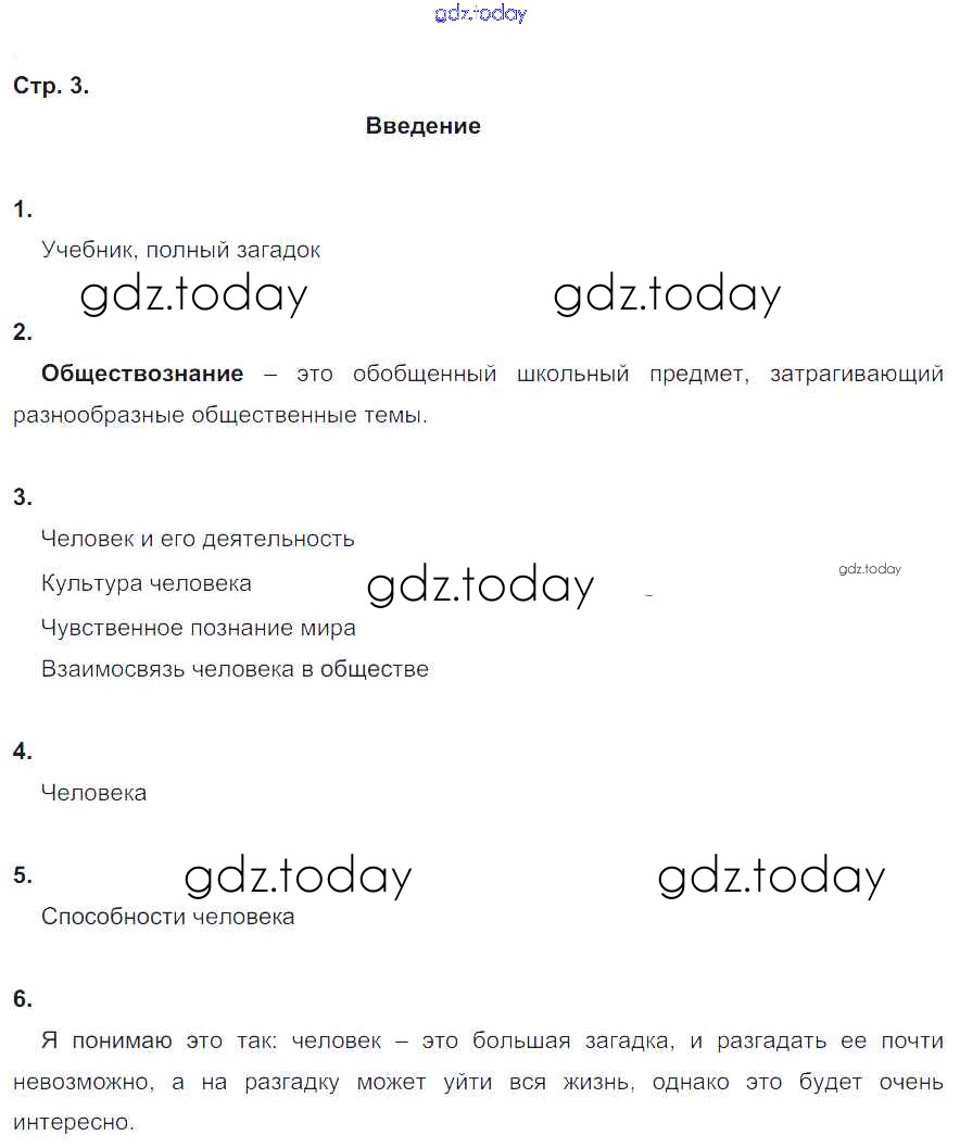 На страницах сайта gdz.today вы найдете учебный и вспомогательный материал, направленный на улучшения знаний школьной программы. ГДЗ - онлайн мир знаний Введение стр. 3 Рабочей тетради по Обществознанию для 6 класса Соболева Вентана-граф УМК 2019