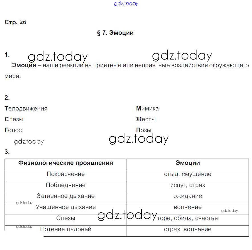 На страницах сайта gdz.today вы найдете учебный и вспомогательный материал, направленный на улучшения знаний школьной программы. ГДЗ - онлайн мир знаний Решение к § 7 стр. 26 Рабочей тетради по Обществознанию для 6 класса Соболева Вентана-граф УМК 2019