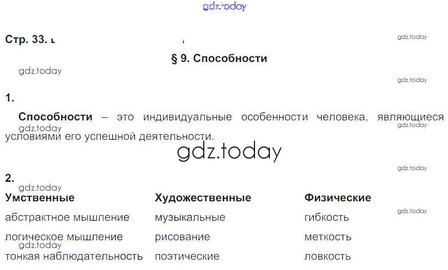 На страницах сайта gdz.today вы найдете учебный и вспомогательный материал, направленный на улучшения знаний школьной программы. ГДЗ - онлайн мир знаний Решение к § 9 стр. 33 Рабочей тетради по Обществознанию для 6 класса Соболева Вентана-граф УМК 2019