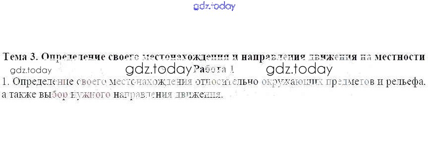 На страницах сайта gdz.today вы найдете учебный и вспомогательный материал, направленный на улучшения знаний школьной программы. ГДЗ - онлайн мир знаний Работа 1 Решение к теме 3. Определение своего местонахождения и направления движения на местности 1 Рабочей тетради по ОБЖ для 6 класса Демидов Лицей 2016