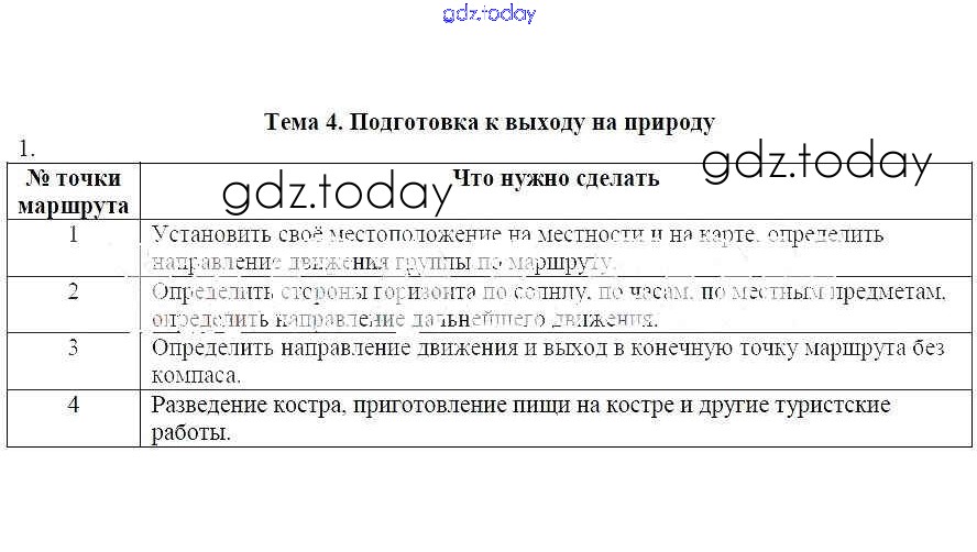 На страницах сайта gdz.today вы найдете учебный и вспомогательный материал, направленный на улучшения знаний школьной программы. ГДЗ - онлайн мир знаний Решение к теме 4. Подготовка к выходу на природу 1 Рабочей тетради по ОБЖ для 6 класса Демидов Лицей 2016
