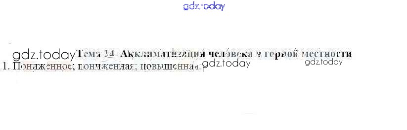 Ответы к Решение к теме 14. Акклиматизация человека в горной местности 1 Рабочей тетради по ОБЖ для 6 класса Демидов Лицей 2016