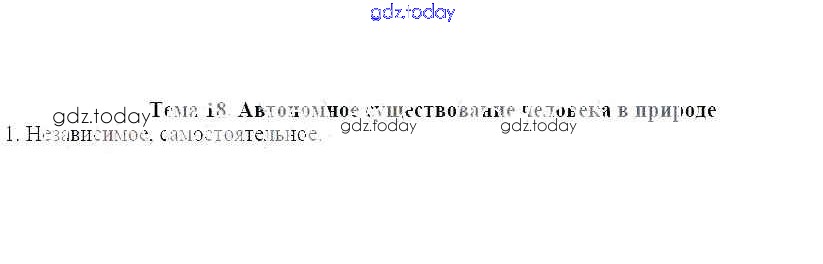 На страницах сайта gdz.today вы найдете учебный и вспомогательный материал, направленный на улучшения знаний школьной программы. ГДЗ - онлайн мир знаний Решение к теме 18. Автономное существование человека в природе 1 Рабочей тетради по ОБЖ для 6 класса Демидов Лицей 2016