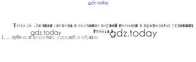 На страницах сайта gdz.today вы найдете учебный и вспомогательный материал, направленный на улучшения знаний школьной программы. ГДЗ - онлайн мир знаний Работа 1 Решение к теме 26. Личная гигиена и оказание первой помощи в природных условиях 1 Рабочей тетради по ОБЖ для 6 класса Демидов Лицей 2016