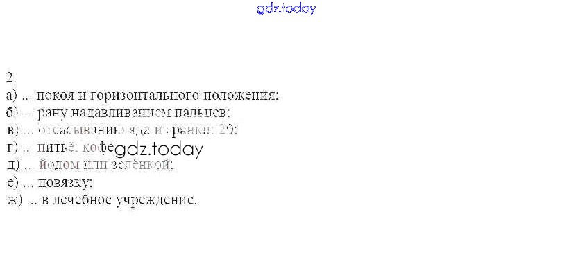 На страницах сайта gdz.today вы найдете учебный и вспомогательный материал, направленный на улучшения знаний школьной программы. ГДЗ - онлайн мир знаний Работа 1 Решение к теме 29. Оказание первой помощи при укусах змей и насекомых 2 Рабочей тетради по ОБЖ для 6 класса Демидов Лицей 2016