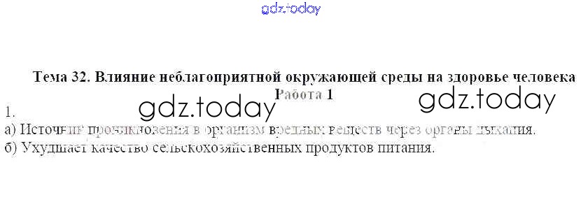 На страницах сайта gdz.today вы найдете учебный и вспомогательный материал, направленный на улучшения знаний школьной программы. ГДЗ - онлайн мир знаний Работа 1 Решение к теме 32. Влияние неблагоприятной окружающей среды на здоровье человека 1 Рабочей тетради по ОБЖ для 6 класса Демидов Лицей 2016