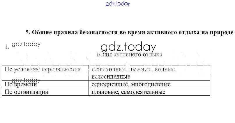 На страницах сайта gdz.today вы найдете учебный и вспомогательный материал, направленный на улучшения знаний школьной программы. ГДЗ - онлайн мир знаний Решение к теме 5. Общие правила безопасности во время активного отдыха на природе 1 Рабочей тетради по ОБЖ для 6 класса Егорова Лицей 2012