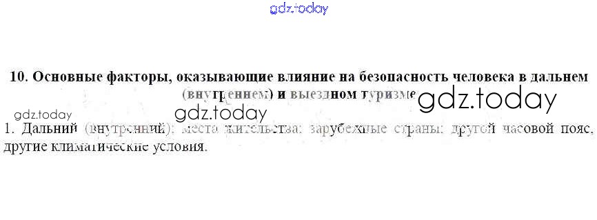 На страницах сайта gdz.today вы найдете учебный и вспомогательный материал, направленный на улучшения знаний школьной программы. ГДЗ - онлайн мир знаний Решение к теме 10. Основные факторы, оказывающие влияние на безопасность человека в дальнем (внутреннем) и выездном туризме 1 Рабочей тетради по ОБЖ для 6 класса Егорова Лицей 2012