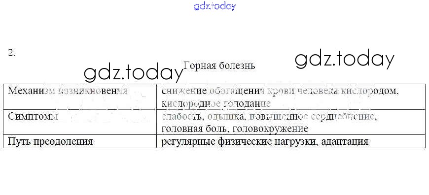 На страницах сайта gdz.today вы найдете учебный и вспомогательный материал, направленный на улучшения знаний школьной программы. ГДЗ - онлайн мир знаний Решение к теме 12. Акклиматизация человека в горной местности 2 Рабочей тетради по ОБЖ для 6 класса Егорова Лицей 2012