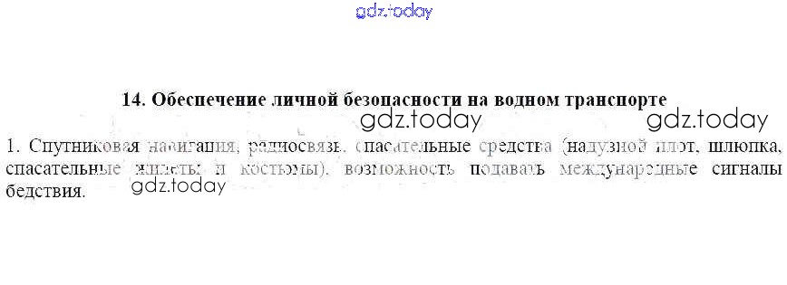 На страницах сайта gdz.today вы найдете учебный и вспомогательный материал, направленный на улучшения знаний школьной программы. ГДЗ - онлайн мир знаний Решение к теме 14. Обеспечение личной безопасности на водном транспорте 1 Рабочей тетради по ОБЖ для 6 класса Егорова Лицей 2012