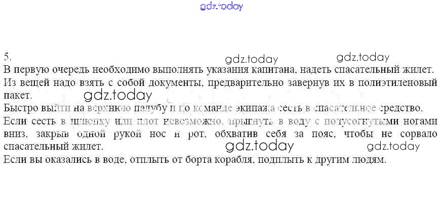 На страницах сайта gdz.today вы найдете учебный и вспомогательный материал, направленный на улучшения знаний школьной программы. ГДЗ - онлайн мир знаний Решение к теме 14. Обеспечение личной безопасности на водном транспорте 5 Рабочей тетради по ОБЖ для 6 класса Егорова Лицей 2012