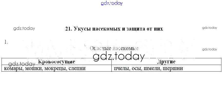 На страницах сайта gdz.today вы найдете учебный и вспомогательный материал, направленный на улучшения знаний школьной программы. ГДЗ - онлайн мир знаний Решение к теме 21. Укусы насекомых и защита от них 1 Рабочей тетради по ОБЖ для 6 класса Егорова Лицей 2012