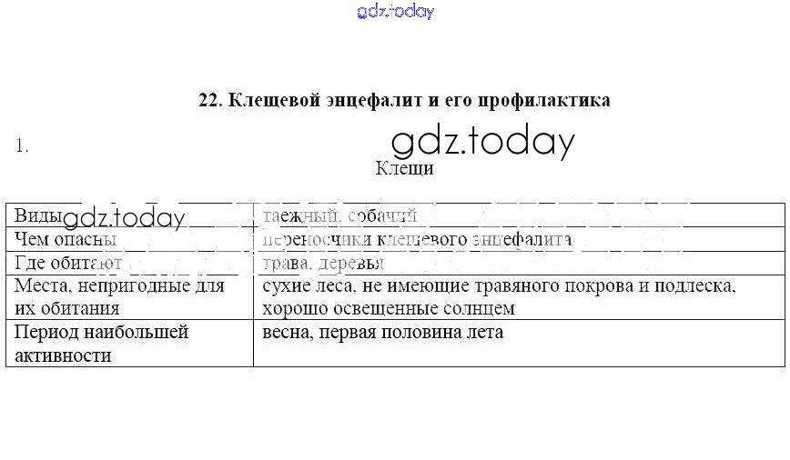 На страницах сайта gdz.today вы найдете учебный и вспомогательный материал, направленный на улучшения знаний школьной программы. ГДЗ - онлайн мир знаний Решение к теме 22. Клещевой энцефалит и его профилактика 1 Рабочей тетради по ОБЖ для 6 класса Егорова Лицей 2012